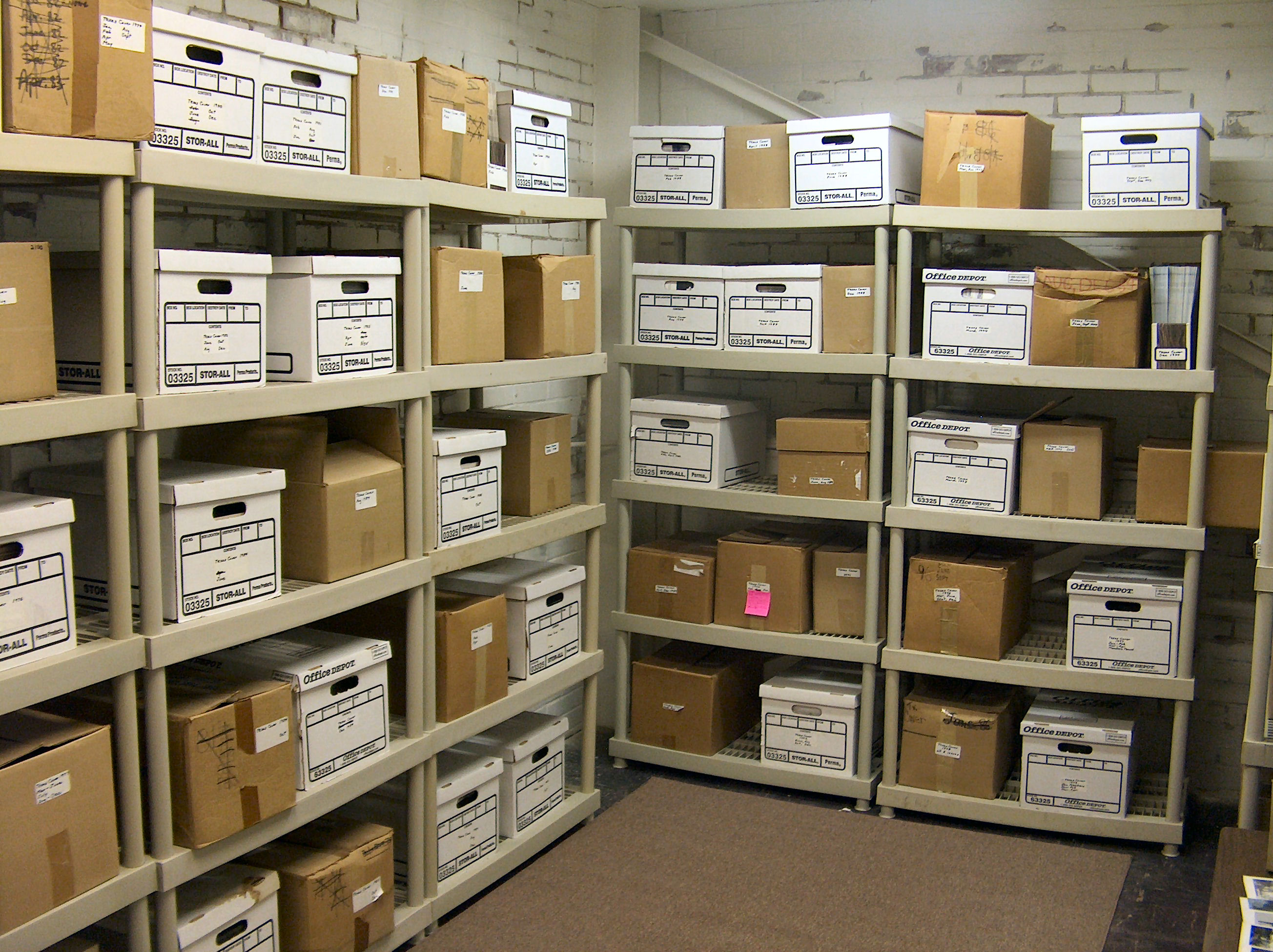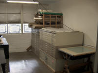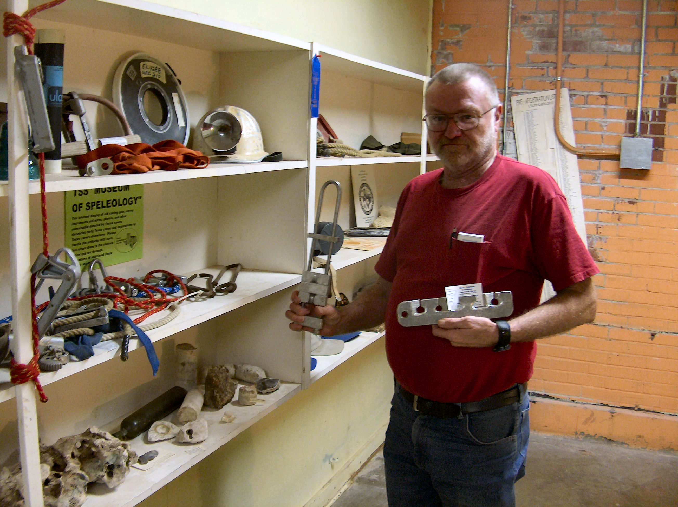TSS/TSA Library and Office NOTE: Because of the move in progress, the TSS Library is not currently available for use. Watch this space for updates. The TSS Library and Meeting space is housed at the Texas Speleology Center (address and driving directions). There, the TSS holds a large a working archive of papermaterials on the caves and karst resources of Texas, as well as a non-circulating library with a broad selection of books and magazines on the topics, as well as maps. (Its main archive of cave information is digital.). The TSS also has a small museum, containing significant pieces of gear and historic memorabilia (all donations). The TSS Library also contains the archive of The Texas Caver (the official journal of the Texas Speleological Association), and many back issues of international, national, regional, and local caving publications (including NSS News, the Journal of Cave and Karst Studies, newsletters from various grottos (the term for local caving clubs affiliated with the National Speleological Society), and reports from various state entities that concern the Texas underground. Cavers, students, and teachers are welcome to make an appointment to come by the TSS Office in Austin and use our materials. However, because of various restrictions and for reasons of conservation, some materials held in the Library cannot legally be released to the public, copied, or distributed. We will, however, help you with what you need, to the best of our abilities. We also have a small lending library of books and CDs for teachers' use. Because the office is not regularly staffed, no loans are possible through the mail. Until mid-2020, the TSS Library was housed at the J. J. Pickle Research Campus of the University of Texas at Austin, in space donated by the Texas Memorial Museum. It occupied the entire third floor of Building 18-A, with individual rooms dedicated to maps, TSS publication stock, files for proprietary and public information, a photo archive, and a large meeting and work room. Visitors to the third floor of 18-A are greeted by the TSS' small museum, containing significant pieces of gear and historic memorabilia (all donations), which also has been moved to the TSC. |