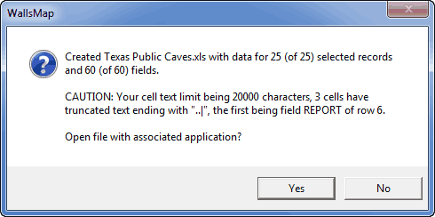 If you are exporting memo fields, the program will truncate the text when its length exceeds the limit you specify. In such cases you'll see a dialog like the following when the operation finishes: