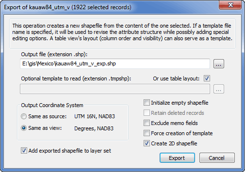 Exporting an Entire Shapefile or a Subset of Records